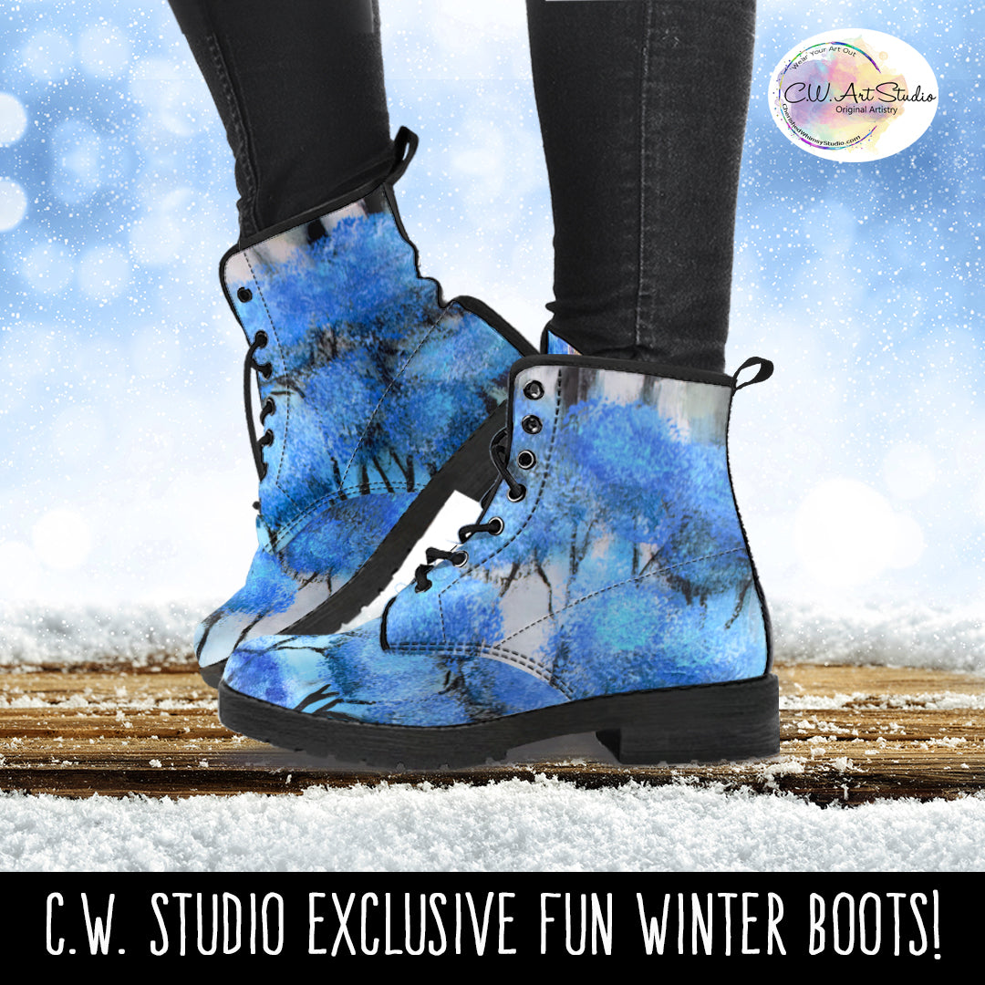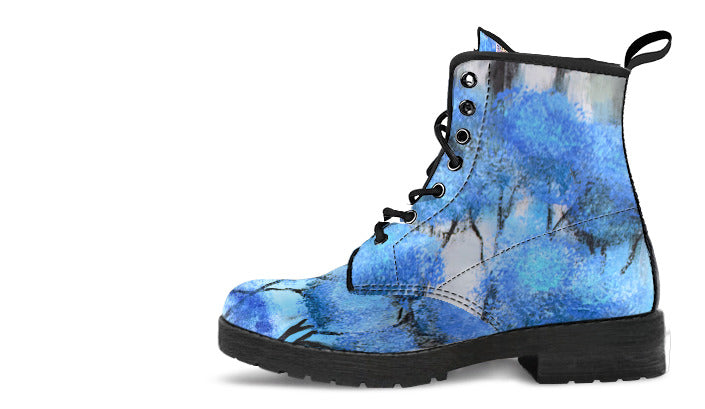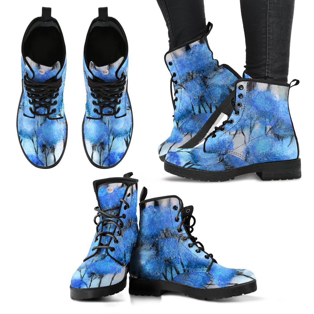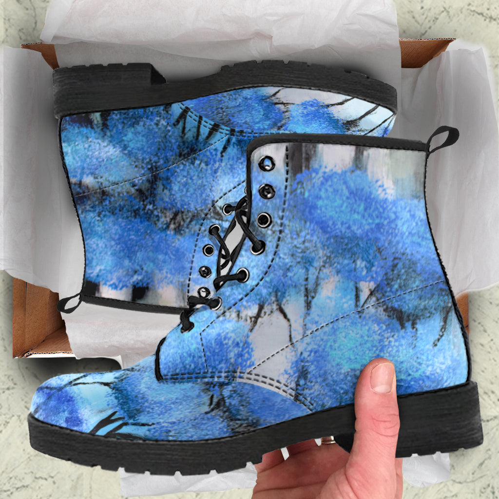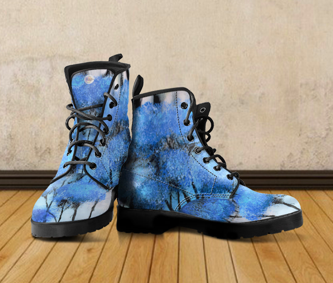 Blue Trees Print - Women's UL Vegan friendly Leather Martin style Boots for Tweens, Teens and Women.