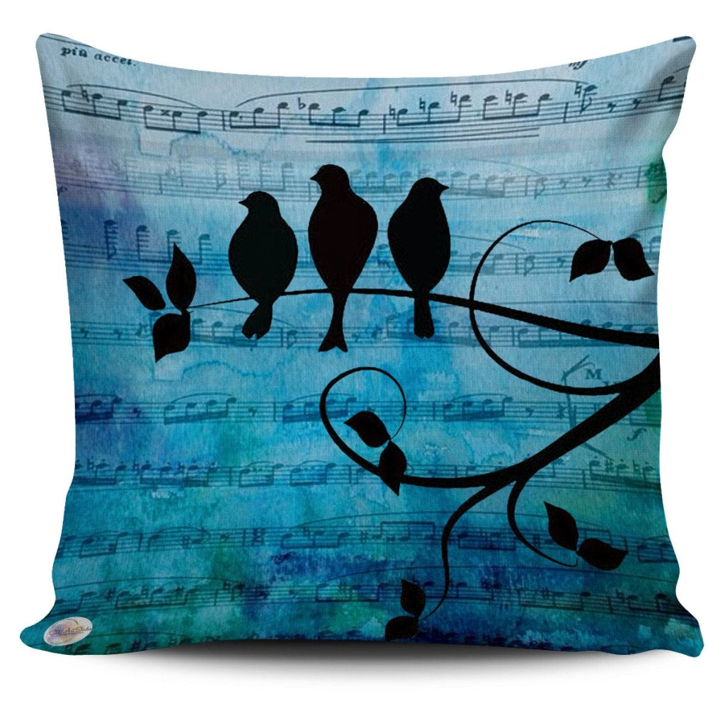 Musical Blue Birds Throw Pillow Cover 18x18in