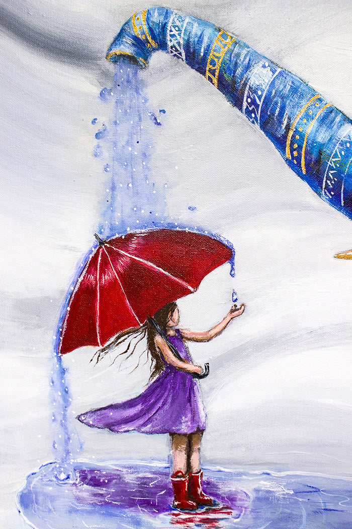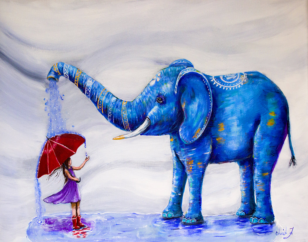 The Blue Oilphant Showers the girl with blessings. Each White Dot represents a beautiful blessing.